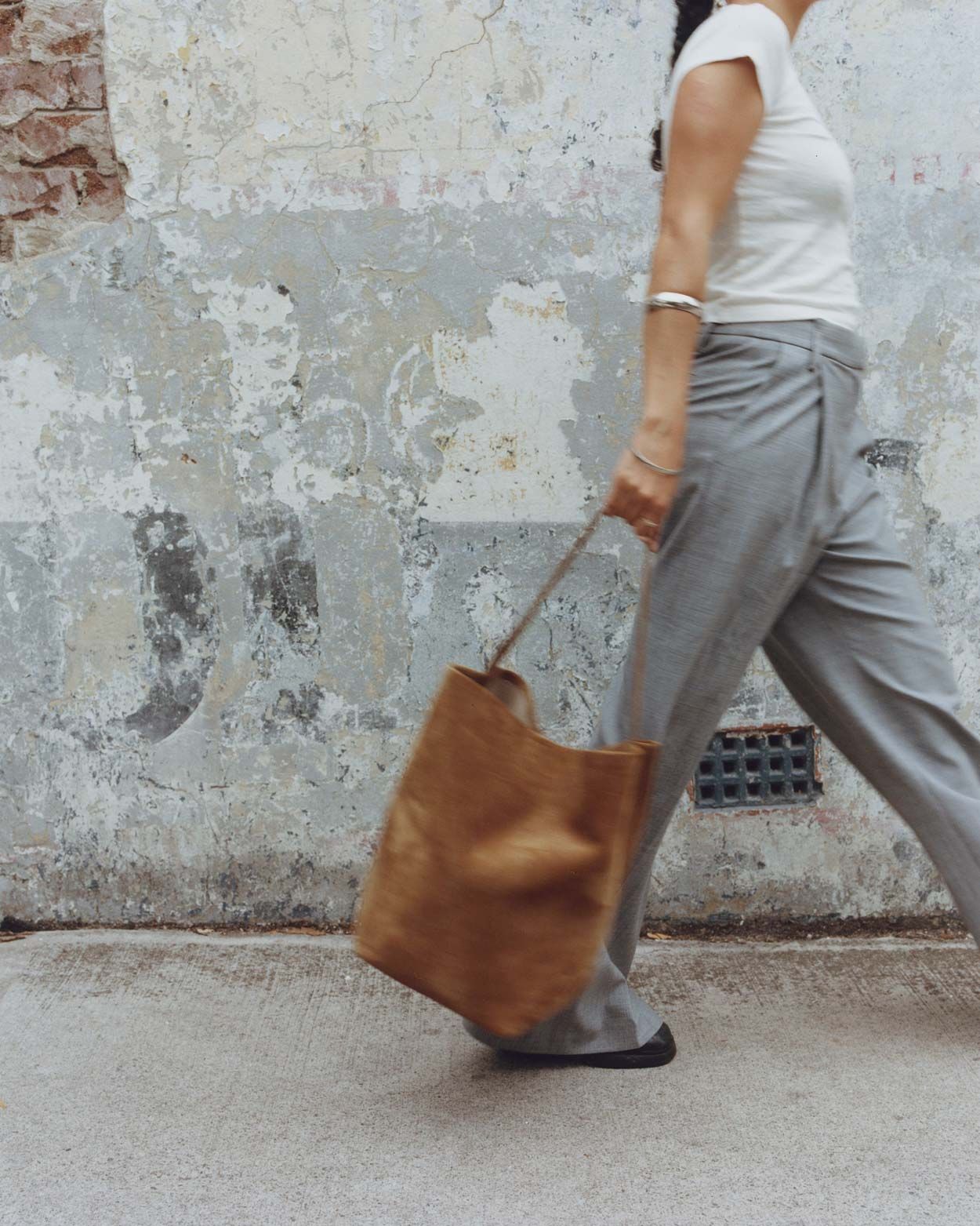 Kiwi actress, Roxie Mohebbi, with her Teresa Tote in Brun Suede.